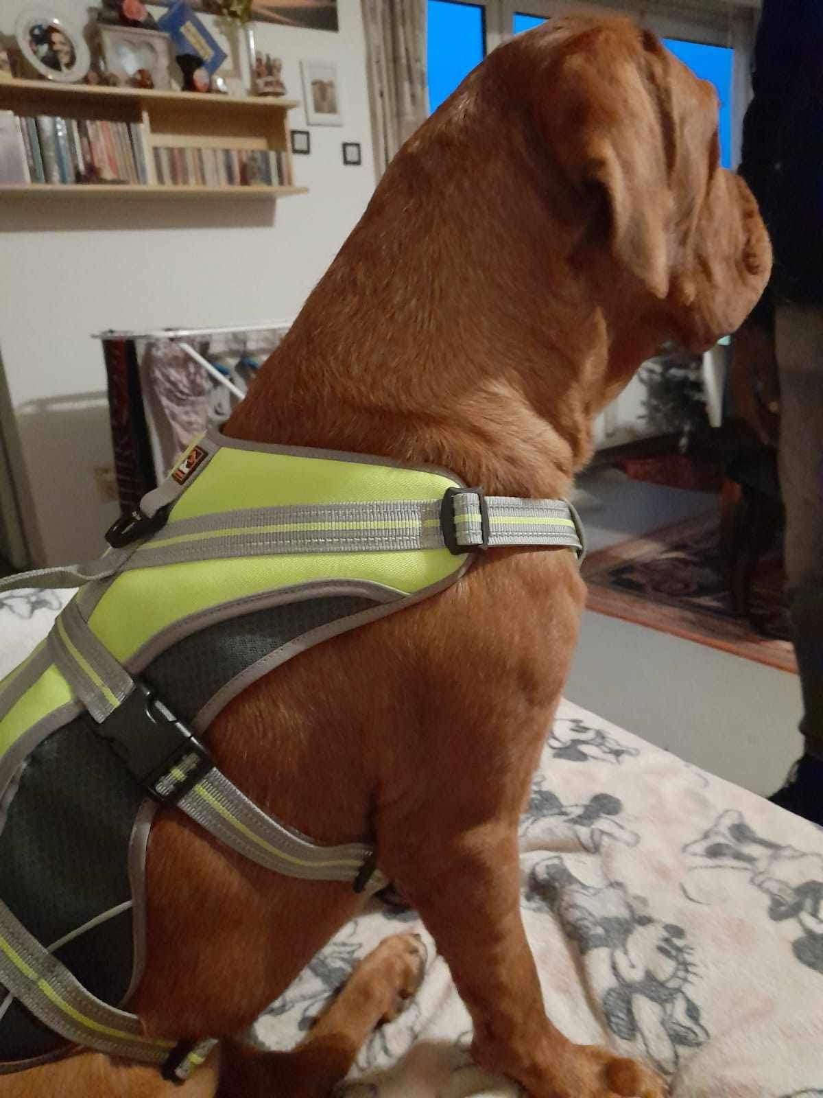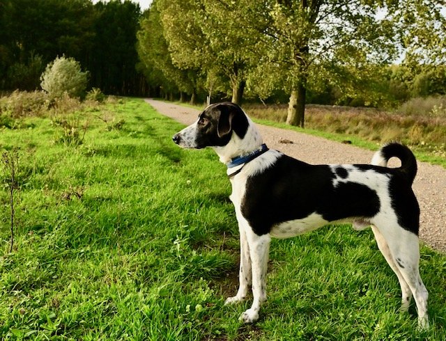 Dat wandelt zoveel fijner, dat ik niet regelmatig een andere weg moet gaan zoeken omdat ze ergens niet langs durft . Nu bekijkt ze het even en na een klein beetje aandringen soms loopt ze er dapper langs. Ze is nu veel rustiger tijdens de wandelingen en minder schrikkerig, ook thuis..