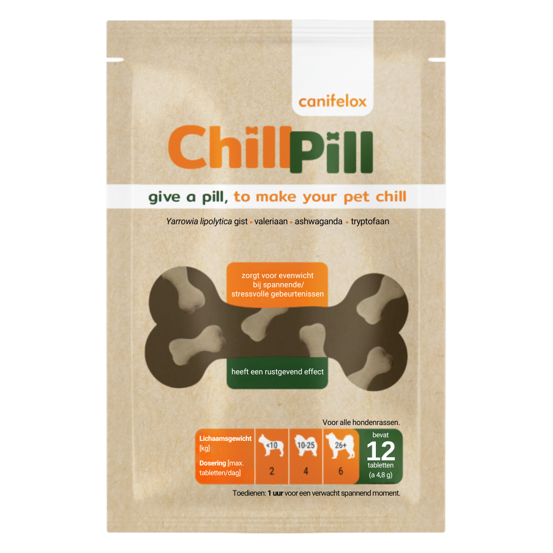 De Chill Pill is een aanvulling op de Canifelox Calm op dagen dat er extreem veel prikkels zijn en honden extra ondersteuning kunnen gebruiken.