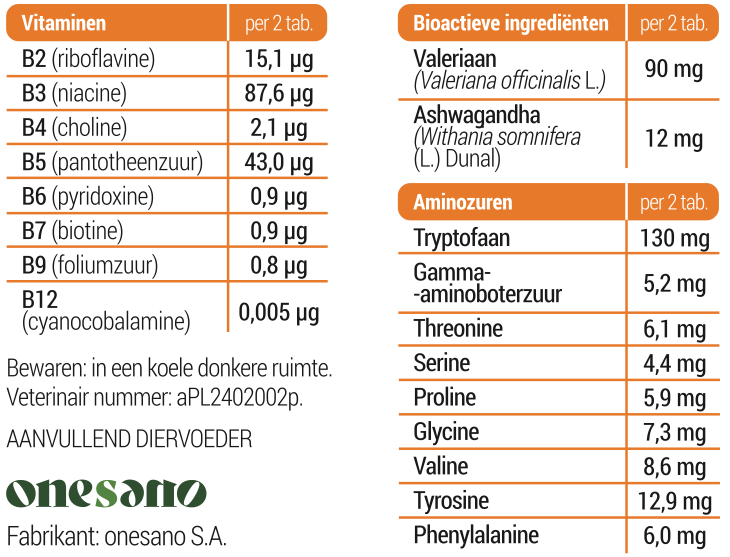 Met de toevoeging van ashwaganda, extra valeriaan en tryptofaan is de samenstelling van de Chill Pill anders dan de Calm en zorgt daardoor voor een sterker effect. Voor het beste effect adviseren we de Calm dagelijks te geven en de Chill Pill uitsluitend incidenteel ernaast in te zetten op één of 2 aansluitende dagen. De kleine verpakking kun je gemakkelijk meenemen in je zak voor onverwachte stressvolle momenten onderweg.