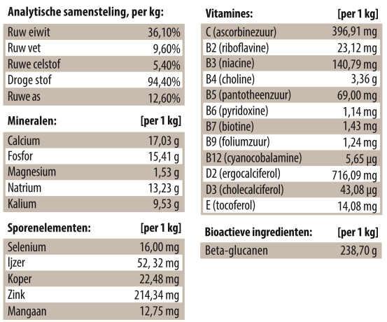 voedingsadditief (per kg): sporenelementen: natriumseleniet (3b801); smaakstof: rundvlees